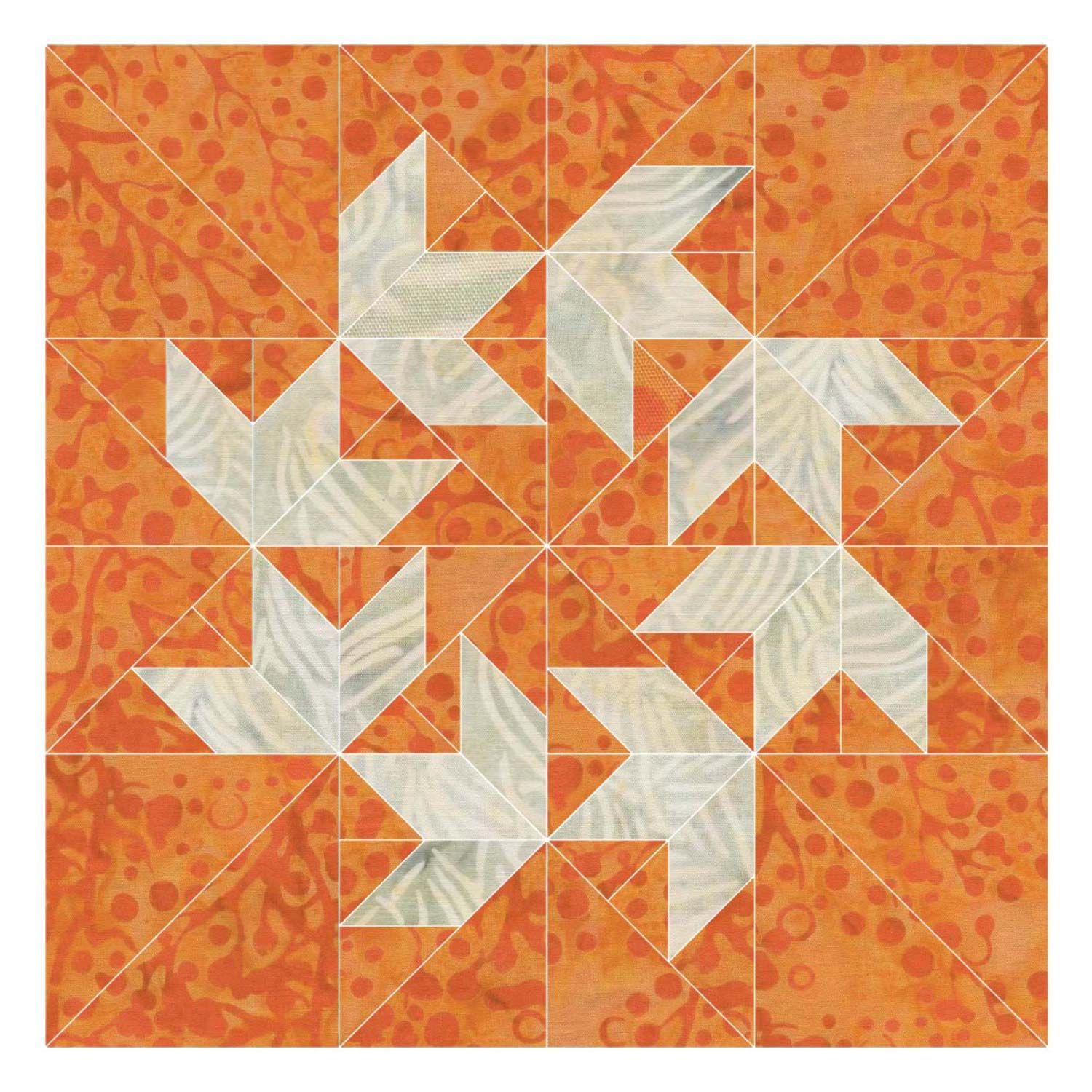 Beinhaltet aufgedruckte Buchstaben und spezielle dog-ears (abgeschrägte Ecken) für einfaches Ausrichten und Zusammennähen.