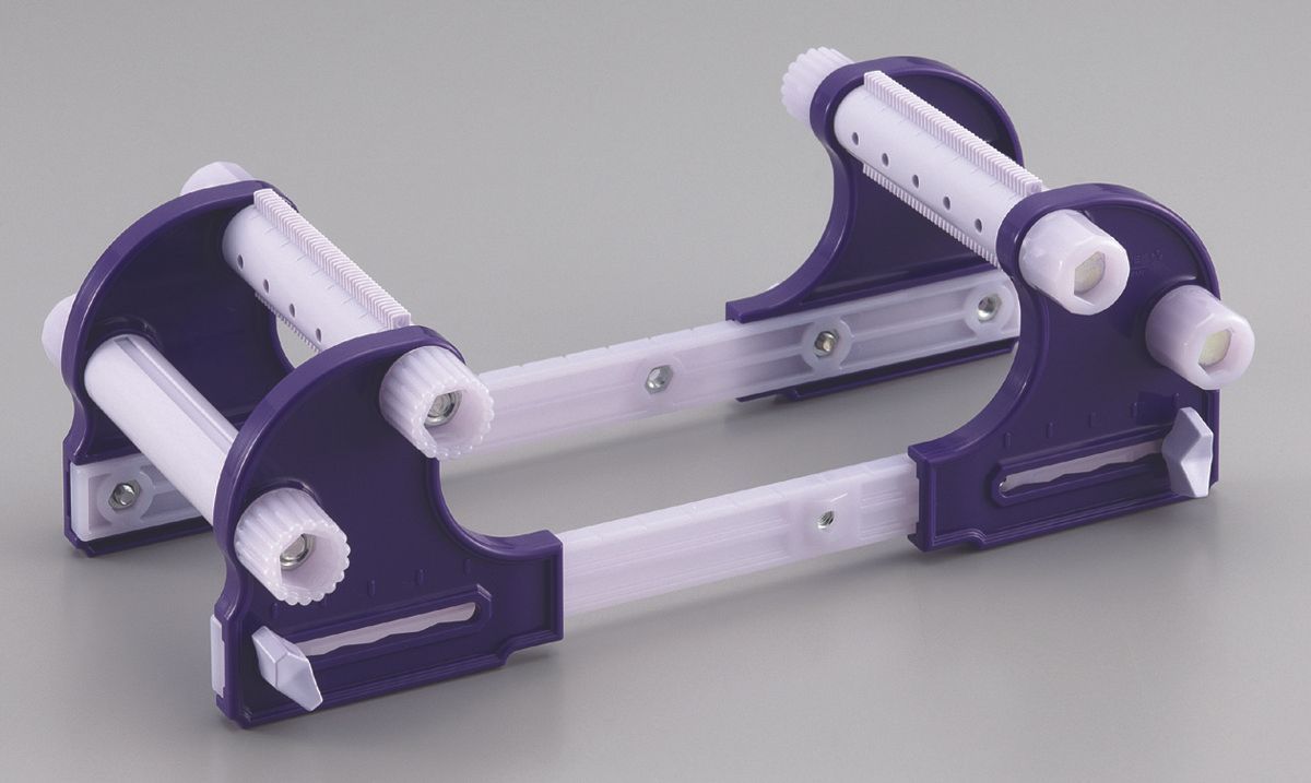 Der Webrahmen ist längenverstellbar von 55 - 215 mm. Es können aber auch längere Accessories erstellt werden, denn das Webstück kann während der Arbeit aufgewickelt werden.