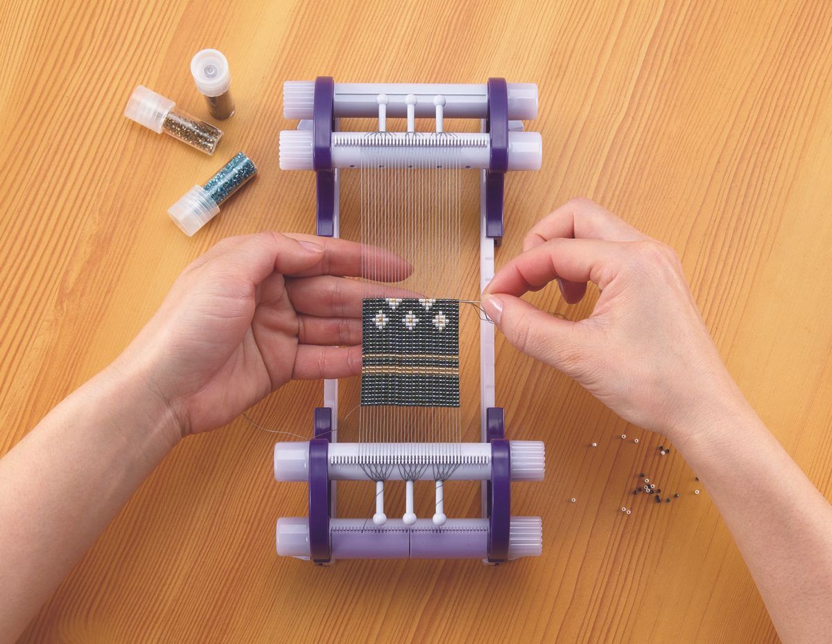 Mit dem benutzerfreundlichen Webrahmen können Sie wunderschöne Accessories herstellen. Ob Kettenanhänger, Armbänder, Lesezeichen - Ihrer Fantasie sind keine Grenzen gesetzt.
