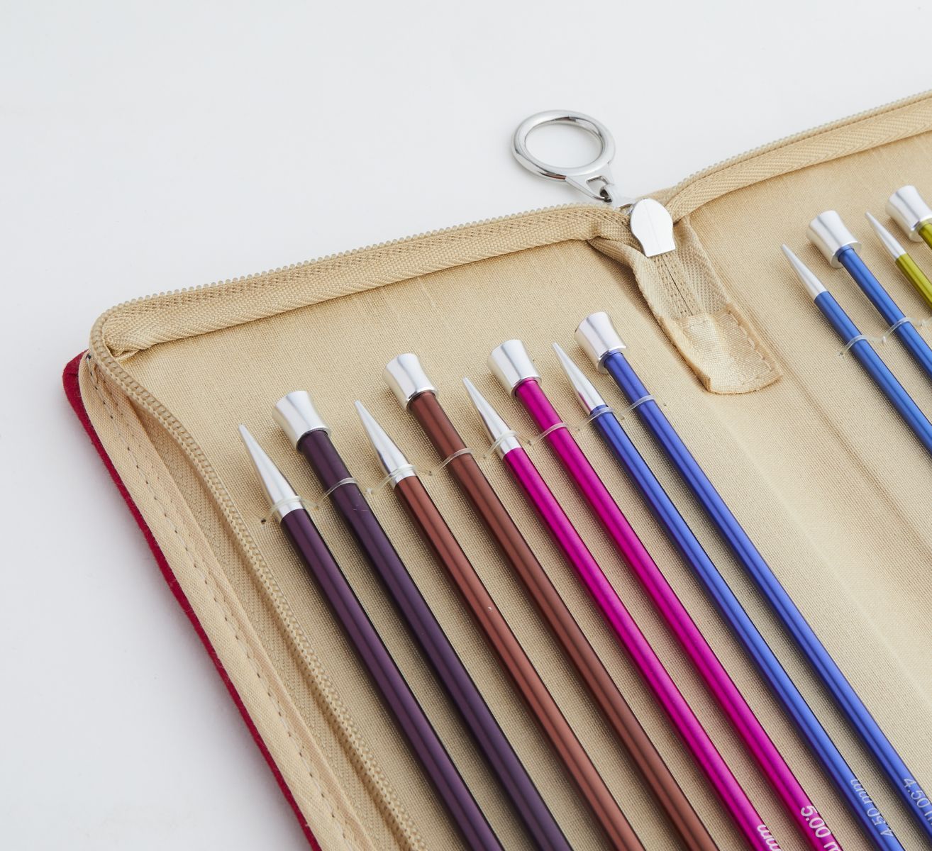 Metallisch schimmernde Farbschattierungen, jede einer bestimmten Größe zugeordnet, wunderschöne, silbrige Spitzen und ein perfektes Finish... diese Nadeln werden garantiert zum Modeakzent anspruchsvoller StrickerInnen!