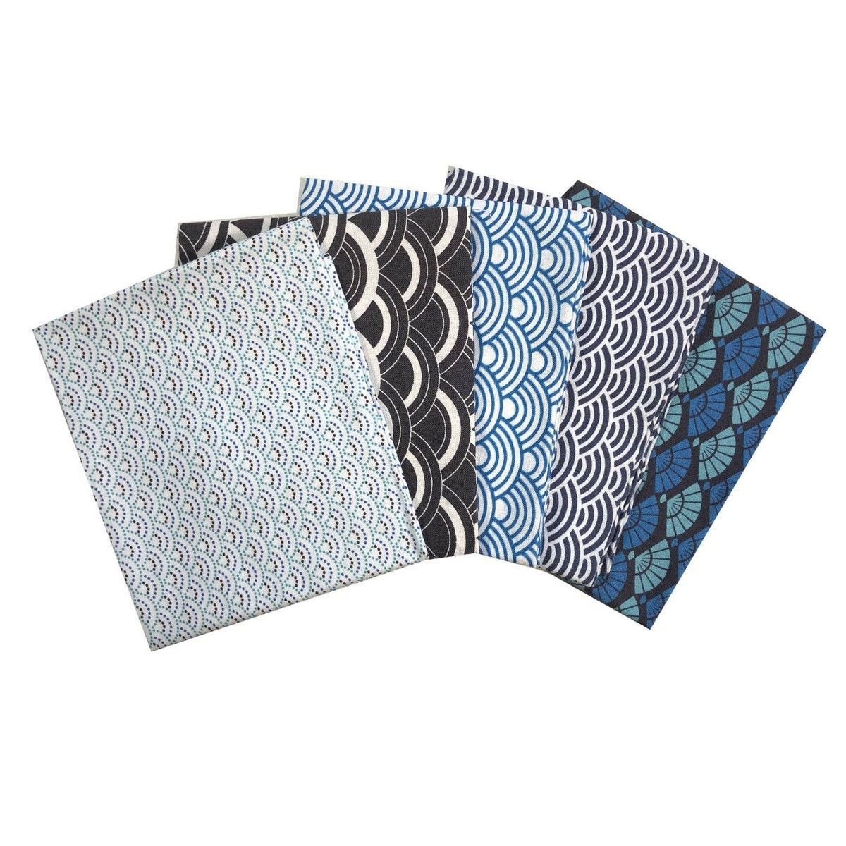 Ein Sortiment von 5 hochwertigen Baumwollstoffzuschnitten in verwandten Designs, eine perfekte Wahl für Ihre Patchwork- und Quiltprojekte.