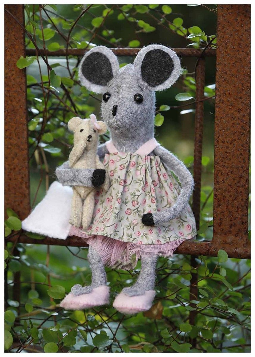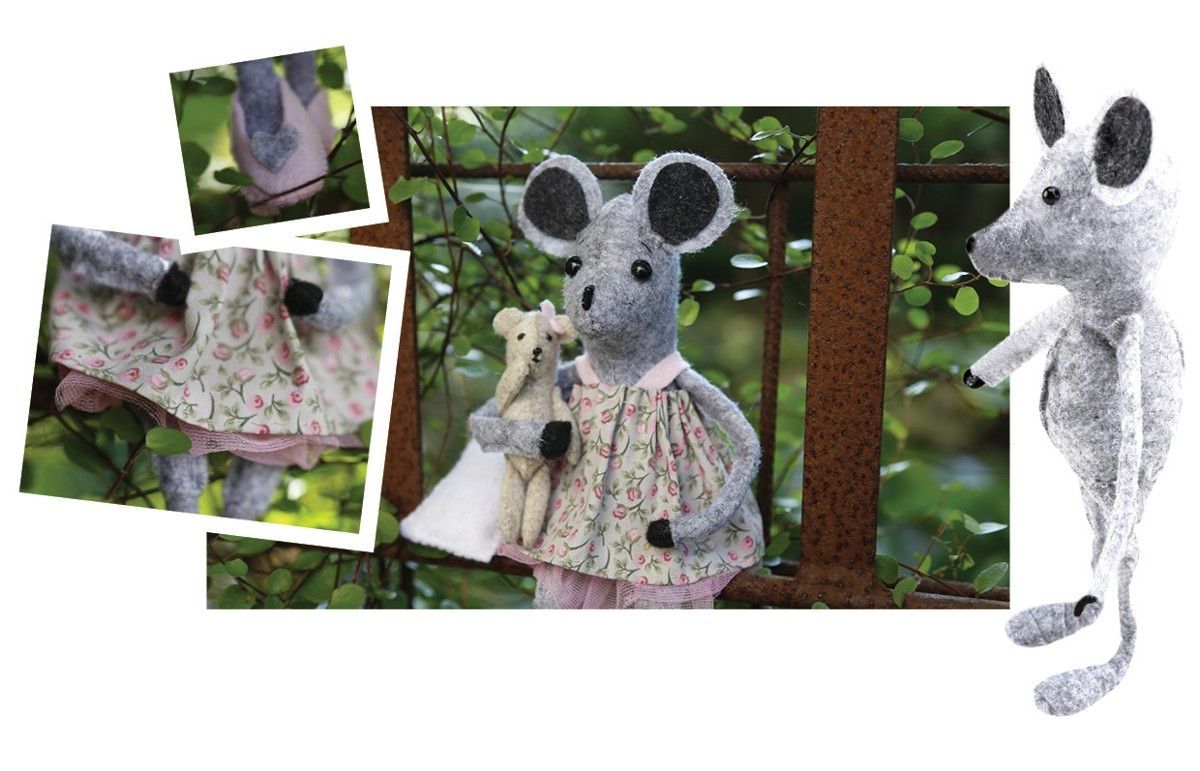 The Cherry and Line (20 cm and 9 cm) Kit contains fabric, fibrefill, yarn, eyes, tulle, metal wire, sewing thread, buttons, wooden charm "Hand made" and patterns.