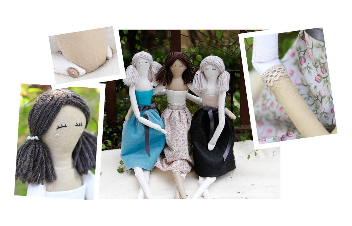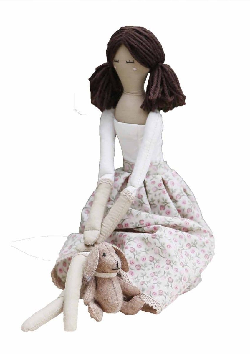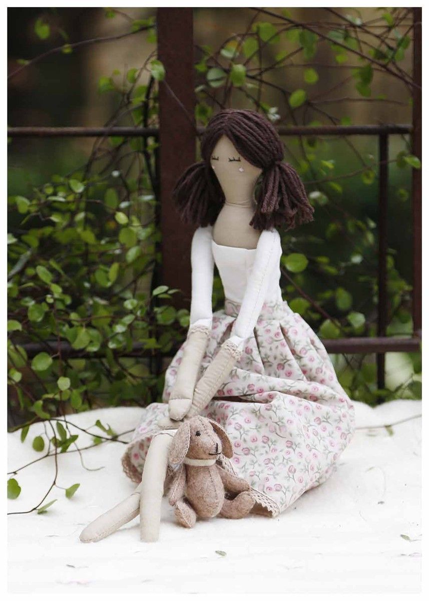 The Rosaly Kit contains fabric, fibrefill, yarn, sewing thread, buttons, wooden charm "Hand made" and patterns.