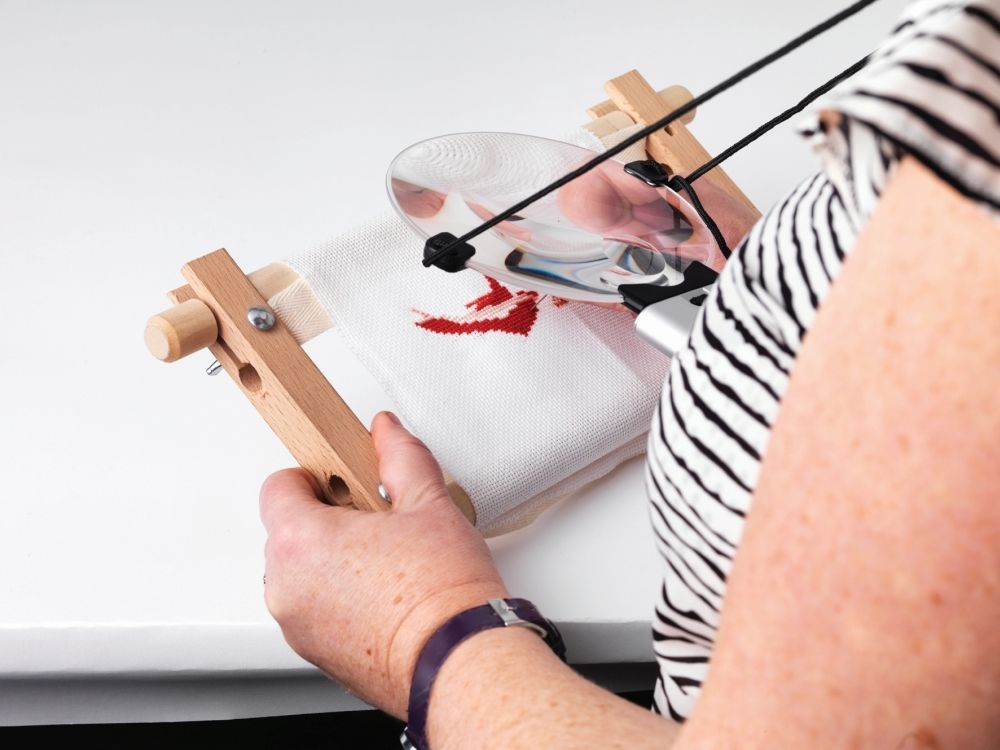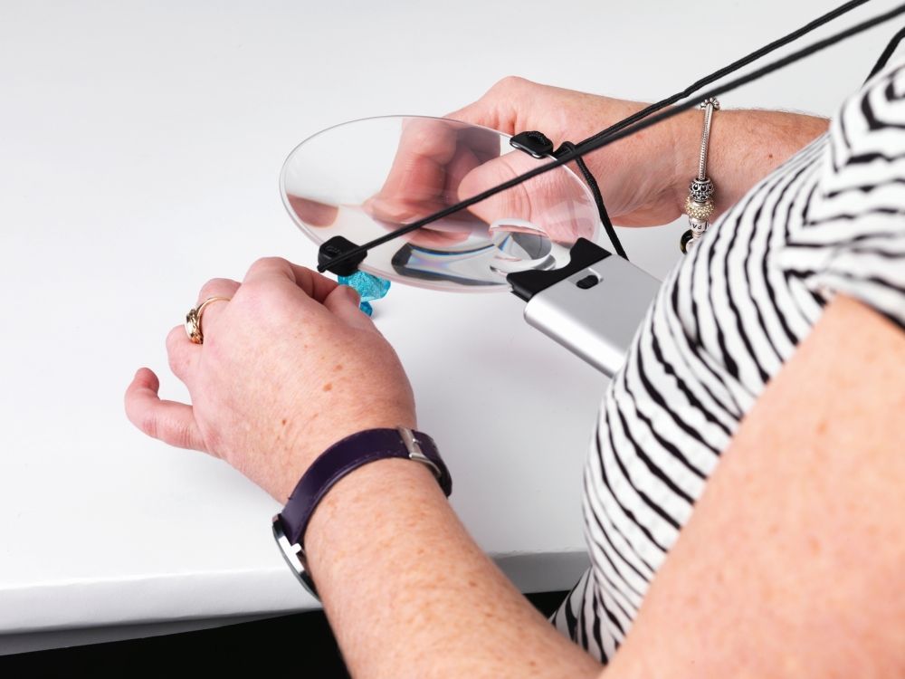 LED Neck Magnifier with 13 cm acrylic lens with 1,8x and integrated lens with 5,0x magnification.