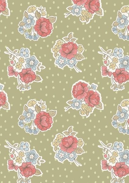 Lewis & Irene Timsbury Lane Sage Green Spotty Bouquet 10m bolt, 112 cm wide, 100% Cotton