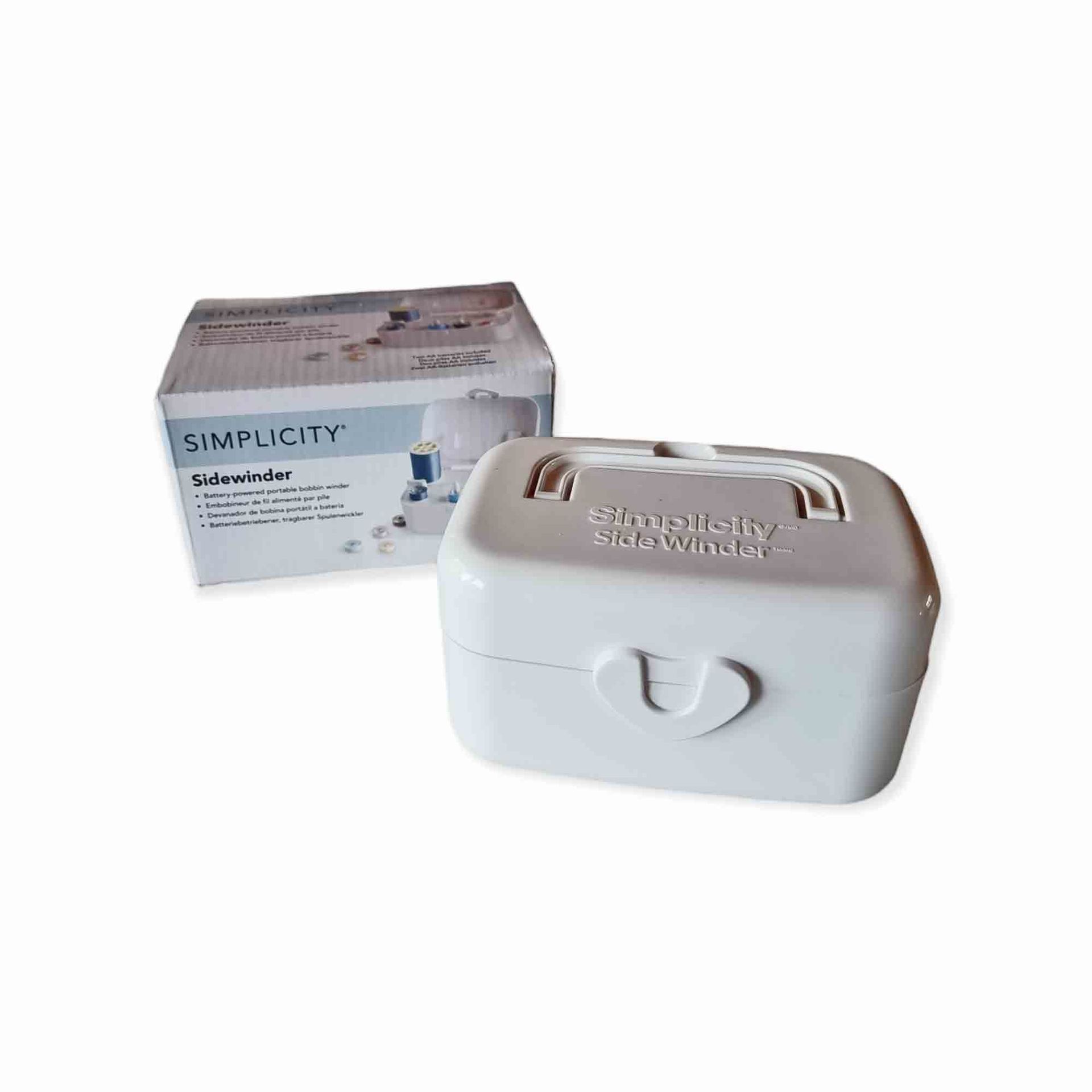 Supplier information "Simplicity Sidewinder, portable Bobbin Winder comes with 2x AA-batteries"