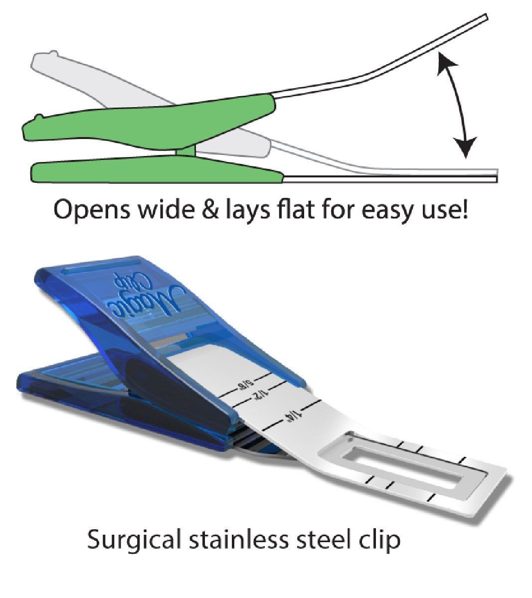 The clip can be opened very wide and you can sew right over it with the feet of the sewing machine.
