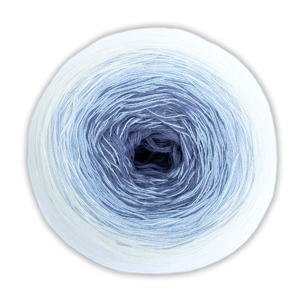 Die 4-fädig gefachten Garne wechseln stest in gleichmäßigen Abständen einen einzelnen Faden. Die traumhaften Farbverläufe entstehen durch das Anknoten der einzelnen Fäden im fließenden Verlauf. Im fertigen Modell sind diese Miniknoten kaum sichtbar. Jeder Bobbel kann von innen nach außen oder umgekehrt gearbeitet werden.