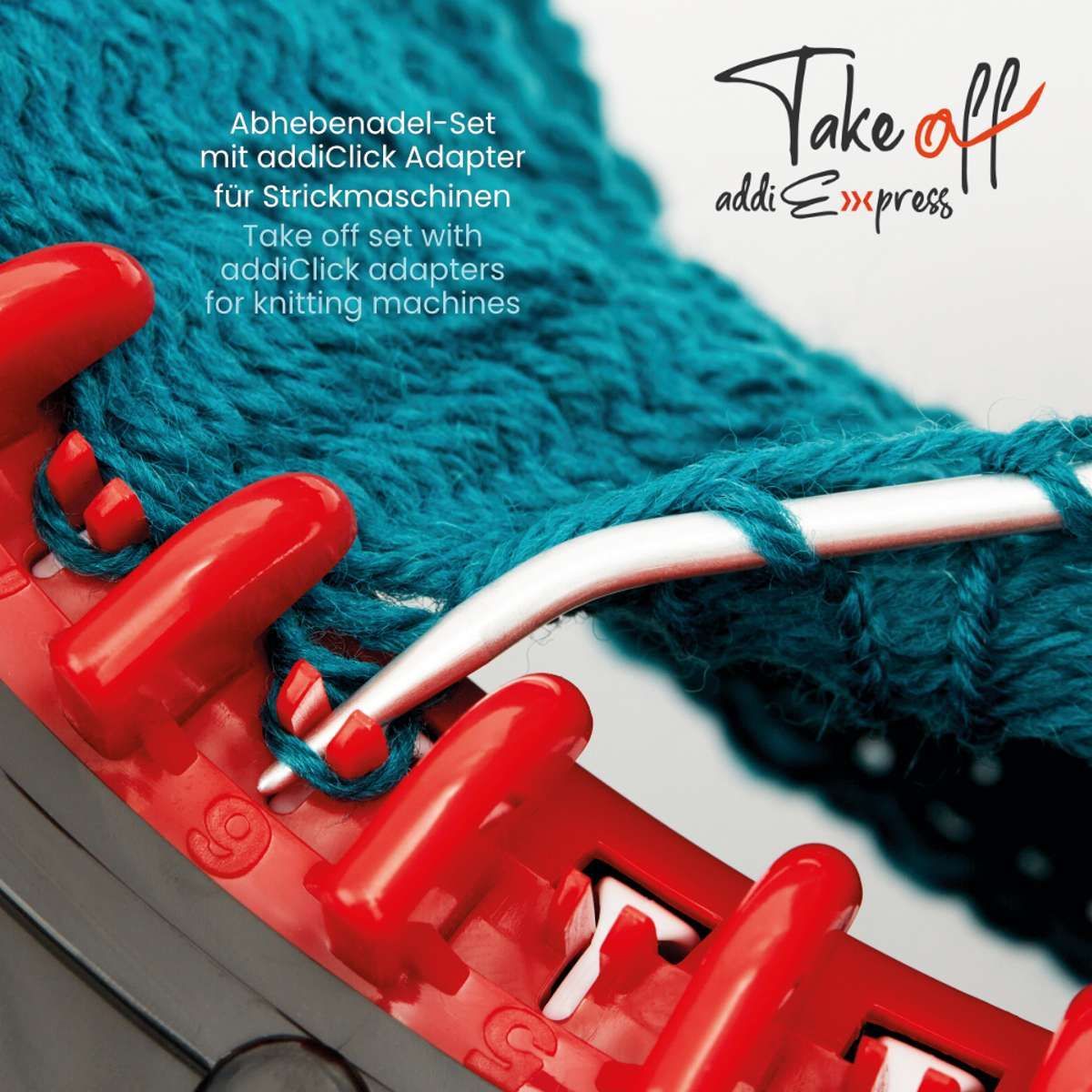 Practical tool for lifting stitches from the addiExpress machines and continuing to knit. The curved lace tip fits exactly between the needle guides of the machines.